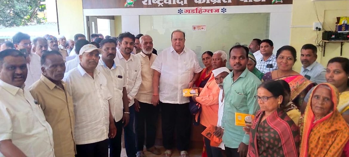 गडहिंग्लज प्रतिनिधी : राज्याचे वैद्यकीय शिक्षण व विशेष सहाय्य मंत्री तथा कोल्हापूरचे पालकमंत्री हसन मुश्रीफ यांच्या हस्ते आज(शनिवार) गडहिंग्लज येथील राष्ट्रवादी काँग्रेस पक्ष कार्यालयात मौजे लिंगनूर क. नुल(ता-गडहिंग्लज) येथील श्रावणबाळ व संजय गांधी निराधार योजनेच्या ३० लाभार्थ्यांना पेन्शन मंजूरीचे पत्र व बँक पासबुकाचे वाटप करण्यात आले.
