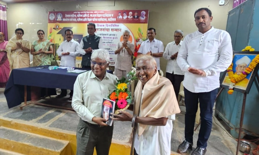 गडहिंग्लज प्रतिनिधी : येथील शिवराज महाविद्यालयात शिक्षक दिनानिमित्त माजी विद्यार्थी शिक्षक नंदकुमार येसादे,विलास माळी (करंबळी),विलास पाटणे(ऐनापूर), एल.बी.बारदेस्कर,एफ.एस.रॉड्रीक्स (गडहिंग्लज),कमल पाटील (आर्दाळ) आदी शिक्षकांचा शाल,ग्रंथ आणि पुष्पगुच्छ देऊन मान्यवरांच्या हस्ते सत्कार करण्यात आला. कार्यक्रमाच्या अध्यक्षस्थानी प्राचार्य डॉ.एस.एम.कदम होते तर शिवराज विद्या संकुलाचे सचिव डॉ.अनिलराव कुराडे व संचालिका प्रा.बिनादेवी कुराडे यांची प्रमुख उपस्थिती होती.